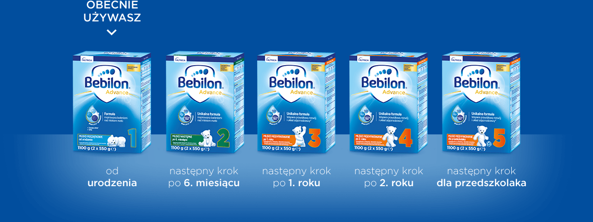 Laktoza z mleka, odtłuszczone mleko w proszku, odmineralizowana serwatka w proszku z mleka, galaktooligosacharydy GOS z mleka (8,94 %), olej palmowy z certyfikowanych upraw, olej kokosowy, olej rzepakowy, koncentrat serwatki z mleka, wysokooleinowy olej słonecznikowy, olej słonecznikowy, białko serwatkowe z mleka, fruktooligosacharydy FOS (0,62 %), olej rybi, wapń, olej z Mortierella alpina, potas, chlorek choliny, magnez, sód, witamina C, emulgator (lecytyny z soi), inozytol, tauryna, żelazo, L-karnityna, cynk, nukleotydy (sól sodowa kwasu urydyno-5’-fosforowego, kwas cytydyno-5’-monofosforowy, kwas adenozyno-5’-fosforowy, sól sodowa kwasu inozyno-5’-fosforowego, sól sodowa kwasu guanozyno-5’-fosforowego), witamina E, przeciwutleniacz (palmitynian askorbylu), kwas pantotenowy, niacyna, L-tryptofan, miedź, witamina A, tiamina, ryboflawina, witamina B6, kwas foliowy, jod, selen, witamina K, mangan, witamina D, biotyna, witamina B12.